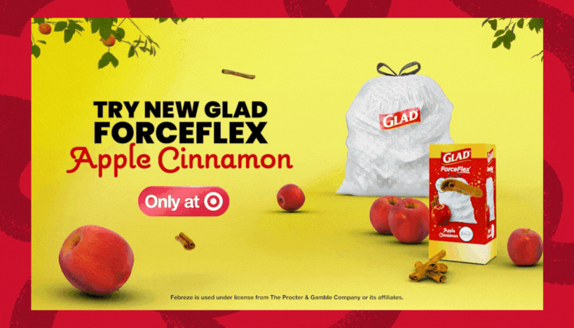We’re always innovating and looking for ways to turn everyday moments into something unexpected. This fall, we’ve done just that with the launch of our Glad ForceFlex Apple Cinnamon scented trash bags exclusively at Target, bringing the cozy, warm aroma of autumn straight into the home and delighting consumers with new, innovative experiences.