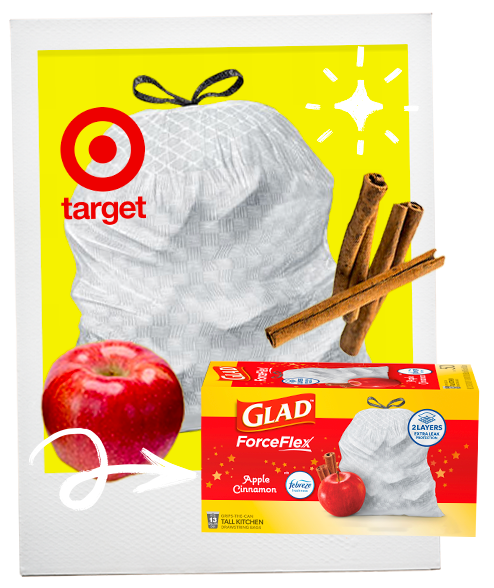 You can find our Apple Cinnamon scented trash bags at Target stores and on Target.com nationwide. The effort is supported by a full marketing plan and puts the seasonal scent front and center: