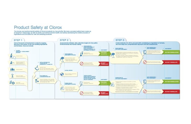 At Clorox, your safety and that of your family, your pets and the environment is a top priority. We start with an evaluation of every product’s safety, efficacy and regulatory compliance before it ever makes it to store shelves.